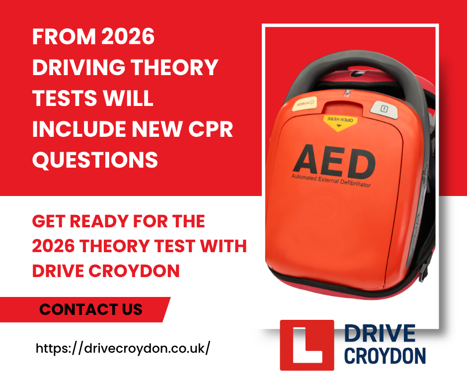 At Drive Croydon, learners are kept up to date with the latest DVSA changes, including the newly introduced CPR and AED first aid questions that will appear in the 2026 theory test.